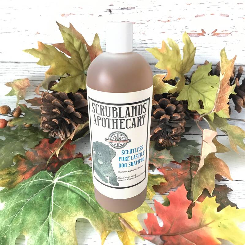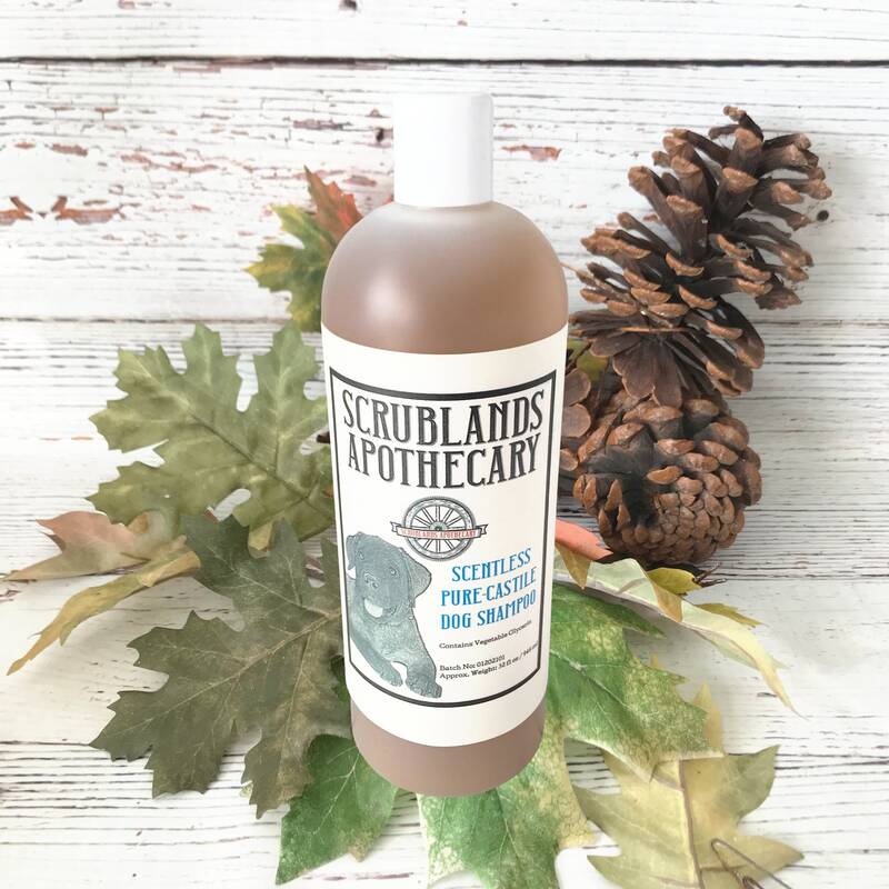 ** The listing includes one 32 fl. oz. bottle of Pure-Castile Unscented Dog Shampoo.